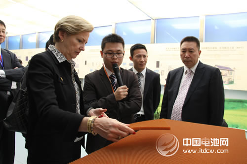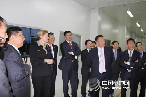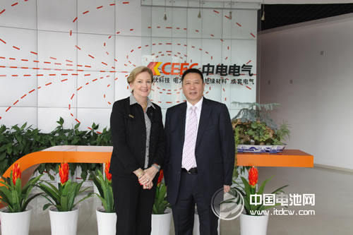 中國電池雜志-中國電池網(wǎng)11月11日訊(特約記者 蘇勇 南京報道)10月29日上午,杜邦公司董事長兼CEO柯愛倫女士率杜邦公司全球副總裁兼大中國區(qū)總裁蘇孝世、電子與通訊事業(yè)部大中國區(qū)總裁鄭憲志、全球光伏事業(yè)部總監(jiān)汪偉等一行,蒞臨中電電氣參觀交流。中電電氣集團(tuán)董事長陸廷秀、監(jiān)事長孫曉武、總裁助理孫啟權(quán),中電電氣(南京)光伏有限公司CEO蔡志方、CTO趙建華博士等熱情接待柯愛倫女士一行。