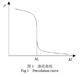 目前,普遍認同的導電膠粘劑的導電機理有兩種。一是導電粒子間的相互連續接觸導電。導電膠粘劑因內部導電粒子間的相互接觸,在三維空間上形成了一定的導電通路,從而使導電膠粘劑具有導電性。而導電粒子的填充量和形狀又決定了導電膠粘劑導電性能的好壞。在低填充濃度下,導電膠粘劑的電阻率會隨著導電填料填充量的增加而逐漸降低,但在一個臨界填充量Mc時,電阻率會突然急劇下降(如圖1所示),此時所對應的填料填充量稱為穿流閾值。通常都認為在這一填充量下,所有的導電顆粒都能相互接觸,形成了一個三維的導電網絡。進一步增加填充量,只能使電阻率略微降低[5]。所以,為了確保得到最佳的導電性能,導電填料的填充量應該稍高于穿流閾值。但是,同一種導電填料會因為導電粒子形狀的不同而出現不同的穿流值。銀粉填充量相同時用球狀銀粉配制的導電膠粘劑電阻率為10–2Ω·cm,而片狀銀粉導電膠粘劑的電阻率可達10–4Ω·cm[6]。Ferro[7]發現用SF70A片狀銀粉(片徑約為3~5μm)制備的導電膠粘劑在銀粉質量分數為50%時已不能導電,一維銀線制備的導電膠粘劑的穿流閾值可降至質量分數30%~40%,由一維銀線制備的帶狀銀粉的穿流閾值甚至可以低于質量分數20%。