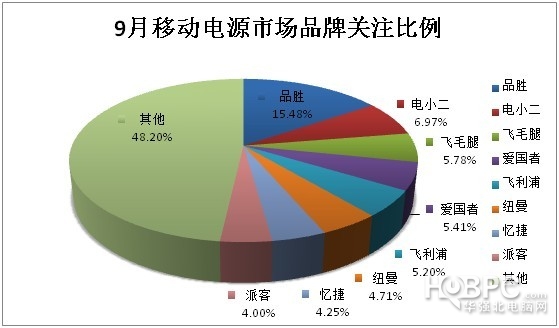 在當(dāng)前市場,關(guān)注度最高的還要屬品勝移動(dòng)電源,因?yàn)樗麄冏鲆苿?dòng)電源比較早,從而建立了一些優(yōu)勢,不過他們的移動(dòng)電源在外觀設(shè)計(jì)方面卻不得人心,在當(dāng)前市場里面占據(jù)著17.1%的市場份額。接著就是電小二,他與品勝一樣,起步比較早,所以占據(jù)了6.97%的市場份額。其次的就是飛毛腿,國內(nèi)知名電池品牌,曾經(jīng)獲得過很多安全大獎(jiǎng),由于涉及移動(dòng)電源領(lǐng)域稍微晚了一些,他們占據(jù)著5.78%的市場份額。另外,還有一些比較不錯(cuò)的,像寶格石、愛國者、飛利浦、派客等產(chǎn)品也有著不錯(cuò)的銷量與關(guān)注度。