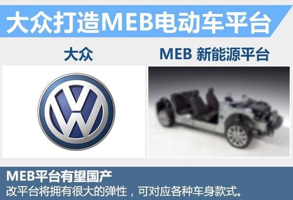 大眾將推出專為新能源車型研發(fā)的全新電動車模塊化MEB平臺,此平臺以現(xiàn)在擁有的機械架構(gòu)為基礎(chǔ),并且擁有較強的擴展性,能夠同時滿足不同級別到不同類型的車在此平臺上得到使用。通過對不同電動車型續(xù)航里程的調(diào)校,可實現(xiàn)250至500公里不等的續(xù)航里程。另外此平臺有望進行本土化,為中國消費者提供不同的純電動車型選擇。