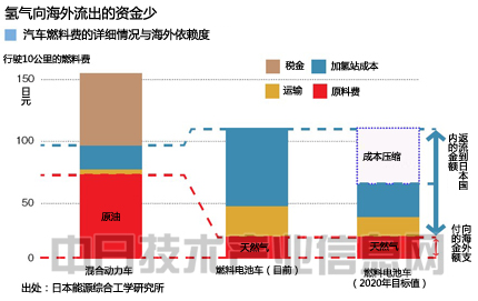日本企業(yè)和政府期待氫氣社會到來的一個原因是“肥水不流外人田”。日本能源綜合工學(xué)研究所表示,以汽油為例,由于作為原料的原油價格高,使用者支付的金額約5成落入了中東產(chǎn)油國的囊中。