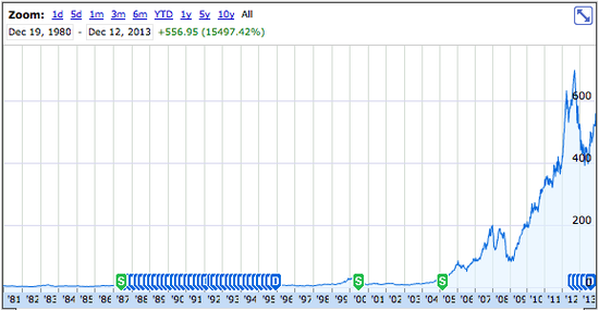 據國外媒體報道,蘋果于1980月12月12日首次公開招股(IPO),發行價22美元,共計出售了460萬股股票。這次IPO融資額度高于自1956年福特汽車(Ford Motor)上市以來任何一次IPO融資規模,并且當時立即創造了300位百萬富翁。