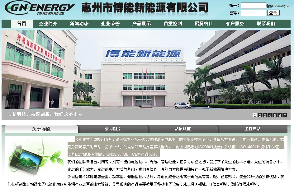 該公司網(wǎng)站顯示,博能新能源成立于2009年9月,是一家專業(yè)從事聚合物鋰離子電池生產(chǎn)的大型高技術(shù)企業(yè),具備從方案設(shè)計(jì)、電芯制造、成品包裝,能充分滿足客戶對產(chǎn)品一攬子一站式的需求和產(chǎn)品方案解決能力。公司已通過ISO9001質(zhì)量體系認(rèn)證、ISO14001環(huán)境體系認(rèn)證、以及EC電池指令測試、UN38.3、UL、CE等產(chǎn)品認(rèn)證。