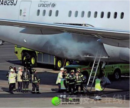 圖1:日航客機(jī)發(fā)生起火事故