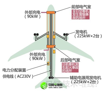美國(guó)波音公司的中型客機(jī)“波音787”接連發(fā)生電池故障,震驚了業(yè)界人士。2013年1月7日,日本航空公司(JAL)一架停泊在美國(guó)波士頓洛根國(guó)際機(jī)場(chǎng)的787客機(jī)機(jī)身后部電氣室里的鋰離子充電電池模