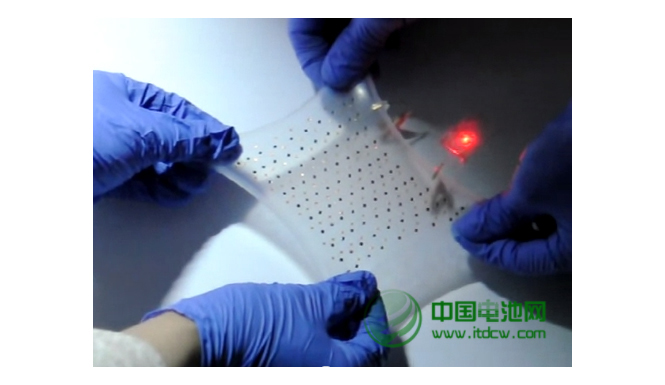 最近,美國伊利諾斯大學(xué)研究人員開發(fā)出了一種新型可拉伸電池,由多個(gè)小塊電池嵌入可拉伸的高分子材料而制成。