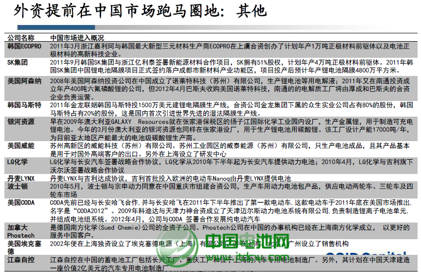 【本網訊】中國電池網-中國電池雜志記者發自北京報道 進入2013年來,跨國巨頭在中國新能源市場特別是電池行業布局動作頻繁,外資跑馬圈地的新聞頻頻亮相。