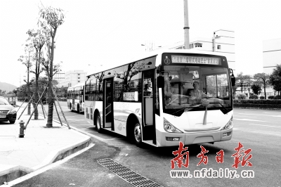 3輛增程式電動巴士進入公交試運營階段。 南方日報記者 梁維春 攝