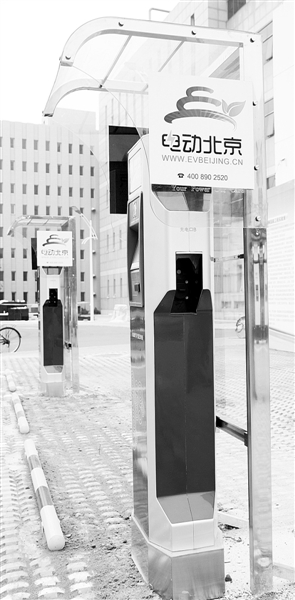 市科委計劃年底前在北京理工大學、北京交通大學、清華大學三所高校內設立電動汽車租賃點,共推出100輛電動汽車,以期減少交通污染。據了解,每輛電動車充滿一次電能跑約130公里。圖為位于北京理工大學新信息樓東側空地設立的16根電動汽車充電樁。