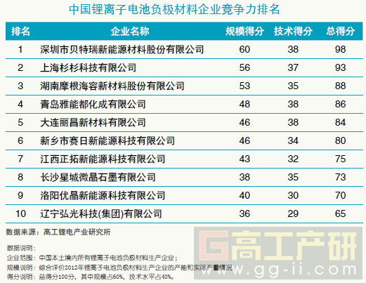 總得分88分,綜合排名第三。原名為長沙海容新材料股份有限公司,成立于2004年,由英國碳素陶瓷材料生產商摩根坩堝公共有限公司控股。公司在便攜式電子產品和電動汽車的鋰電負極石墨材料生產方面,處于公認的技術領先地位。在適當估計經營利潤率的情況下,2011年的業務收入超過5200萬元人民幣。