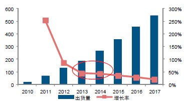 圖3:2010-2017全球平板電腦出貨量(百萬(wàn)臺(tái))