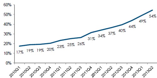 圖1:智能機(jī)滲透率持續(xù)提升