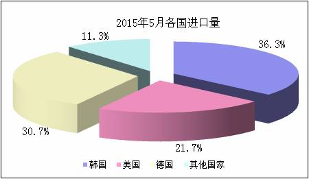 圖2 2015年5月各國進口量占比 數據來源:海關
