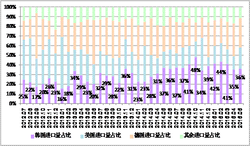 圖3 自韓國進口量占比日漸增加
