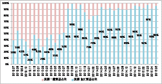 圖5 2015年5月份國別按加工貿(mào)易方式進口占比 數(shù)據(jù)來源:海關(guān)