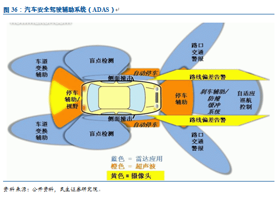 汽車安全駕駛輔助系統(tǒng)(ADAS):是利用安裝在車上的各式各樣傳感器,在汽車行駛過程中隨時來感應(yīng)周圍的環(huán)境,收集數(shù)據(jù),進行靜態(tài)、動態(tài)物體的辨識、偵測與追蹤,并結(jié)合導(dǎo)航儀地圖數(shù)據(jù),進行系統(tǒng)的運算與分析,從而預(yù)先讓駕駛者察覺到可能發(fā)生的危險,有效增加汽車駕駛的舒適性和安全性。根據(jù)德勤預(yù)測,汽車安全駕駛輔助系統(tǒng)(ADAS)毛利率水平接近40%,2020年市場規(guī)模近400億美元。