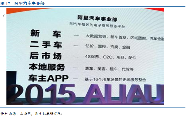 阿里成立汽車事業部,搭建全新平臺,力圖向車主提供看車、選車、買車、用車、賣車全鏈路的汽車電商服務。2015年4月,阿里宣布成立汽車事業部,由原天貓汽車、淘寶汽車、汽車O2O三個團隊合并而成,未來將以“車主+”戰略為中心建立一個新的平臺,并與負責大數據營銷的阿里媽媽、汽車金融的螞蟻金服以及汽車生態產業鏈各方協同合作,力圖向車主提供看車、選車、買車、用車、賣車全鏈路的汽車電商服務。
