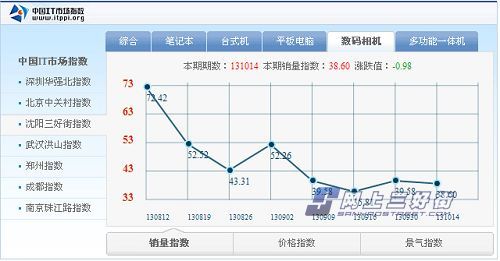 從圖表開(kāi)頭130812期的72.42的最高點(diǎn)開(kāi)始,銷(xiāo)量就一直呈現(xiàn)下滑趨勢(shì),這個(gè)時(shí)候各大相機(jī)廠商都準(zhǔn)備蓄力推出年中的拳頭產(chǎn)品,絕大多數(shù)用戶(hù)都在持幣 觀望,導(dǎo)致了銷(xiāo)量迅速下滑。在130902期出現(xiàn)了一個(gè)小規(guī)模反彈到了52.26點(diǎn),這個(gè)時(shí)期相機(jī)新品依次公布,部分持幣觀望的用戶(hù)開(kāi)始出資購(gòu)買(mǎi),導(dǎo)致出 現(xiàn)了銷(xiāo)量的一個(gè)小高峰。高峰過(guò)后的銷(xiāo)量依然是下滑,經(jīng)過(guò)了前幾期的大幅度撥動(dòng),目前銷(xiāo)量指數(shù)一直平穩(wěn)的在38點(diǎn)左右徘徊。筆者相信到了年底,隨著各大商家 的清貨促銷(xiāo)活動(dòng)的開(kāi)始,相機(jī)市場(chǎng)的銷(xiāo)量會(huì)再次出現(xiàn)一個(gè)小高峰。