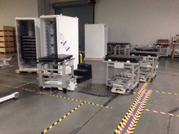 無(wú)人搬運(yùn)車近照。