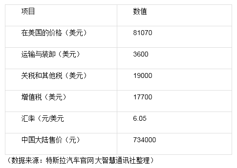 表一、特斯拉汽車國內(nèi)起售價(jià)構(gòu)成情況