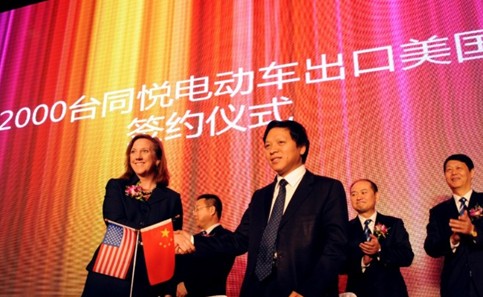 幾周之前,江淮在上海車展前的媒體發(fā)布會上宣布了電動汽車出口美國的消息。江淮汽車股份有限公司副總經(jīng)理佘才榮和美國電動汽車公司GreenTech Automotive Inc(以下簡稱GTA)市場運營總監(jiān)瑪麗安·麥克尼共同簽署了2000輛江淮純電動轎車的出口合作協(xié)議,首批將出口200輛。這宗被GTA董事長王曉麟稱為“中國電動車第一次如此大批量進(jìn)入美國”的交易讓江淮和GTA成為輿論焦點。