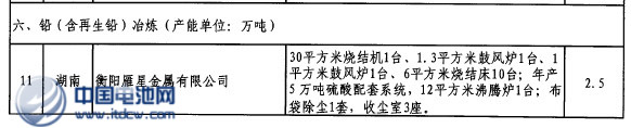 另外,再生鉛冶煉企業淘汰一家:衡陽雁星金屬有限公司。