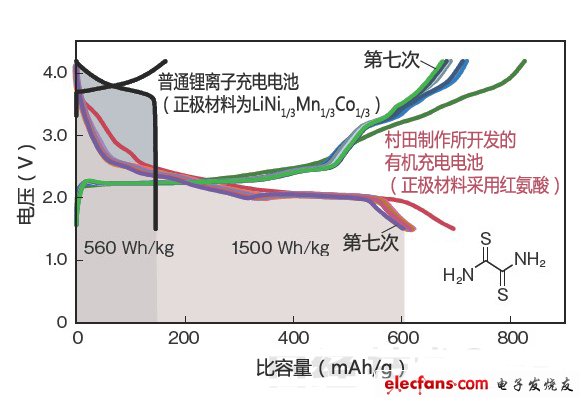 有機化合物與現(xiàn)行的材料相比可提高正極的比容量。村田制作所將紅氨酸定位為主要候補,已確認(rèn)可將容量密度提高到650mAh/g左右。