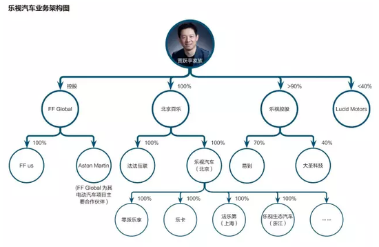 《財經(jīng)》記者通過查詢工商資料,初步還原了賈躍亭布局汽車產(chǎn)業(yè)鏈各個公司主體。其中,最醒目的是Faraday Future(法樂第未來,下稱“FF”)。這是一家樂視投資10億美元并絕對控股的電動車初創(chuàng)企業(yè),也是樂視汽車板塊的主力部隊。