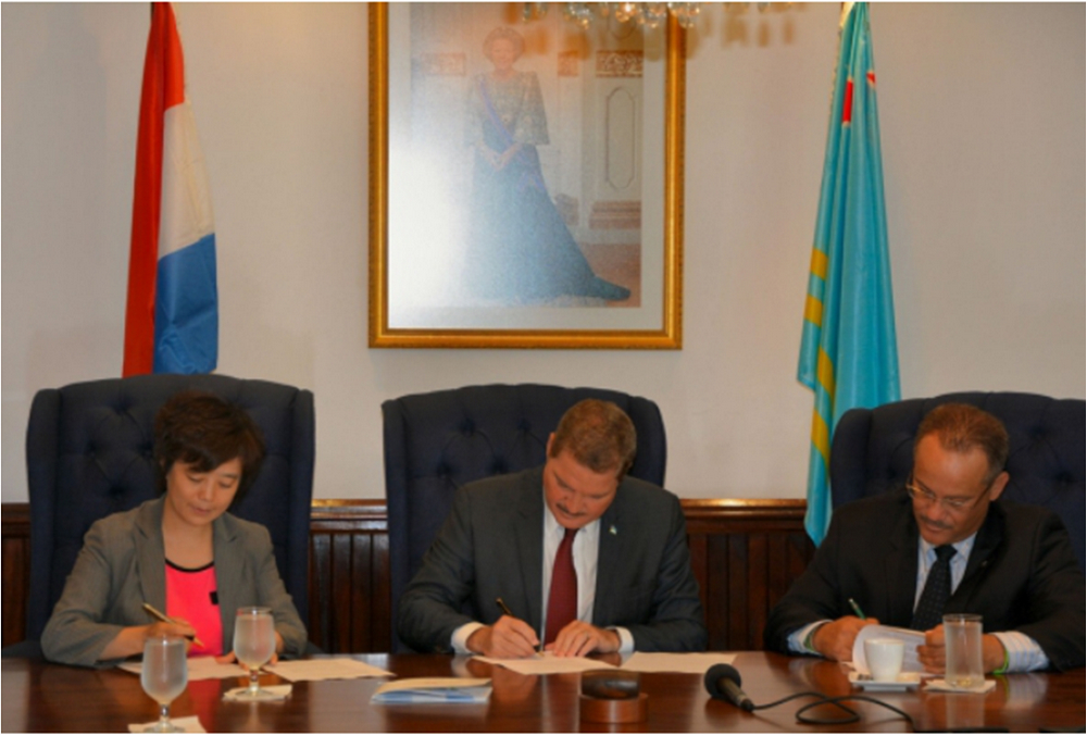 11日,阿魯巴總理邁克·埃曼,財政部部長邁克·梅薩,阿魯巴Utilities Aruba NV運營總監弗蘭克·赫沃茲與比亞迪美國分公司總裁李柯簽訂合作諒解備忘錄。阿魯巴計劃運用比亞迪的綠色科技在2020年前實現成為“零排放”國家的雄偉目標。