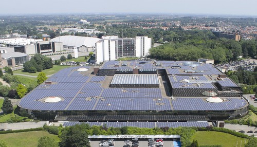 2.5MW光伏系統(tǒng)安裝在布魯塞爾商城的屋頂上,位于布魯塞爾地標(biāo)原子塔附近。占用面積兩畝多(21,400平方米)——相當(dāng)于四個足球場的大小,是布魯塞爾地區(qū)最大的光伏電站之一。該電站年發(fā)電量200萬千瓦時,相當(dāng)于555個家庭每年平均能源消費(fèi)量。