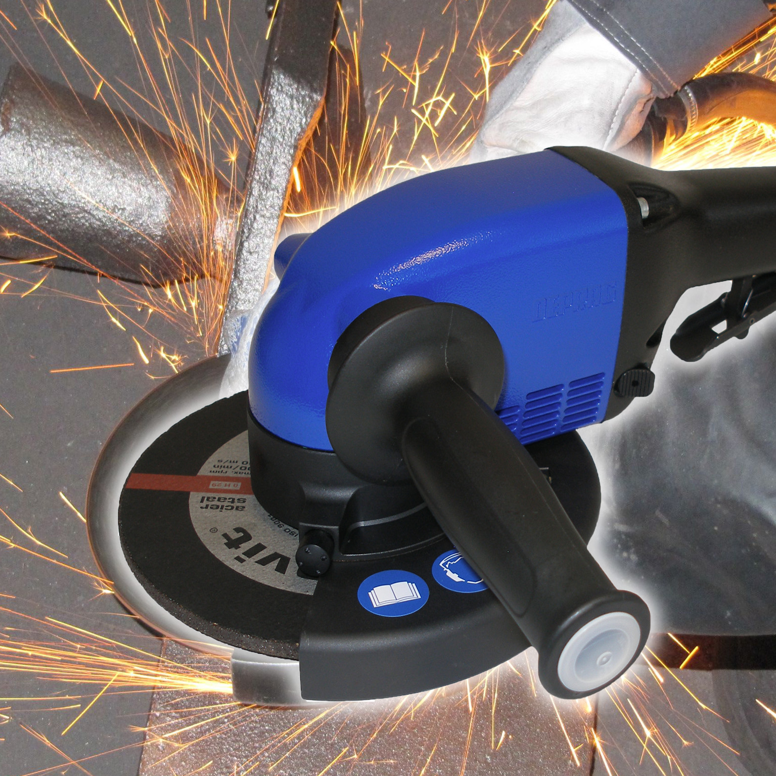 對于在無負(fù)載的狀態(tài)下,轉(zhuǎn)速達(dá)到10000RPM的角磨機(jī)進(jìn)行了一次新的改進(jìn),打磨盤和切割片的直徑可增大到150MM。現(xiàn)有的2.2KW的打磨機(jī)不僅可以使用125MM直徑的磨料,還可以使用115MM,180MM直徑的磨料。