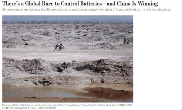 對此,《華爾街日報》2月11日刊發文章稱,中國正在拿下全球電池市場,從剛果(金)開始,到手機、新能源車。