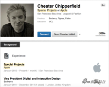 蘋果近期招聘了又一名時尚業的重量級人士,即巴寶莉數字及互動設計副總裁切斯特·奇普菲爾德(Chester Chipperfield)。...