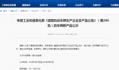 396款新能源車入選第286批《道路機動車輛生產企業及產品公告》