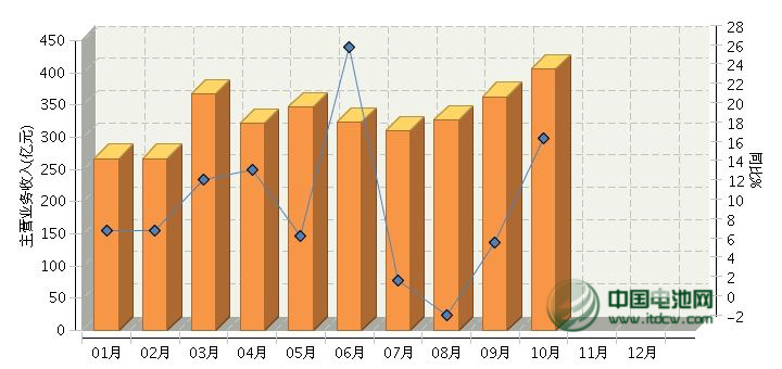 1-10月電池行業主營業務收入情況分析
