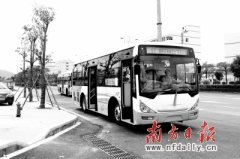 3輛增程式電動巴士進入公交試運營階段。 南方日報記者 梁維春 攝 前日上午,億緯賽恩斯“增程式電動巴士”首發(fā)儀式在仲愷公園舉行。此次首發(fā)的電動巴士長約9.2米,是國內(nèi)首款10米以下“增程式”電動巴士,目前正式進入公交試運行階段。據(jù)了解,仲愷高新區(qū)今年將有三輛這樣的巴士投入運營。 9....