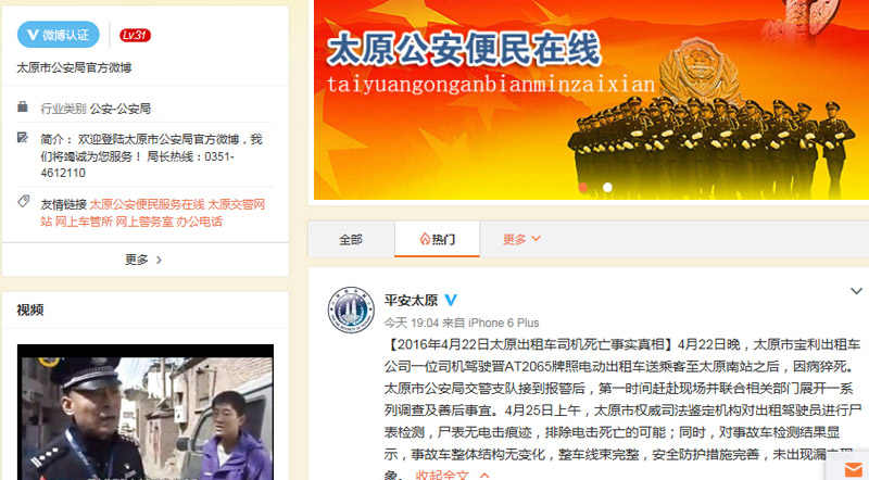 山西太原警方通報網傳電動出租車司機死亡真相