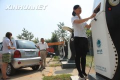 6月15日,山東濱州市市民靳倫杰在濱城區(qū)供電公司“加電站”,僅用了十幾分鐘的時(shí)間,就為自己的愛車加足了電。劉春迎 攝 新華網(wǎng)山東頻道6月17日電 為服務(wù)新能源電動汽車發(fā)展,促進(jìn)清潔能源有效利用。國家電網(wǎng)山東濱州供電公司在城市交通主干道、大型商業(yè)區(qū)和居民區(qū),安裝電動汽車充電機(jī),讓電...