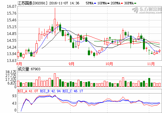 江蘇國泰:2016年前三季營收57.34億元 凈利潤2.42億元