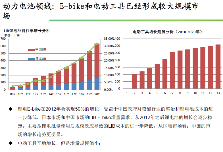 動力電池領域:E-bike和電動工具已成規模市場