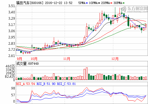 福田汽車:新能源汽車銷量累計同比減少6.55%