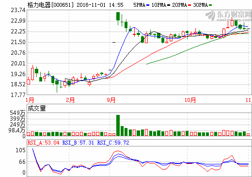 格力電器于10月30日晚公布的三季度業績報告顯示:2016年三季度營收332.46億元,同比增長5.84%;歸屬于上市公司股東的凈利潤為48.27億元,同比增長14.05%;基本每股收益0.80元,同比增長14.29%。...