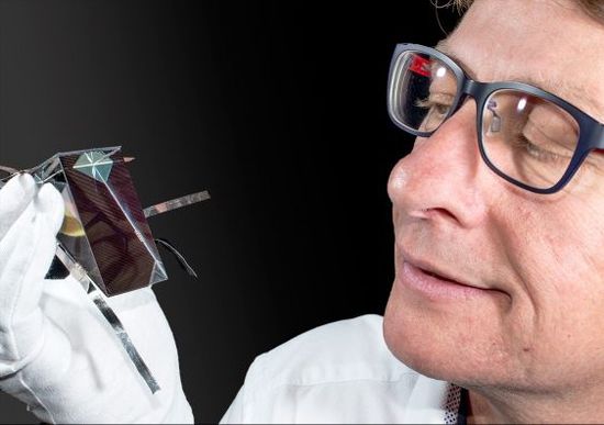 新裝置由嵌入棱鏡的四片迷你模塊結合而成(大小為28cm2),當陽光照射棱鏡的時候,會被分成四段輸入四聯接收器,從而增加了可從陽光中獲取到的能量。...