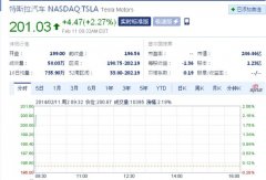 特斯拉股價再創歷史新高 首次站上200美元關口
