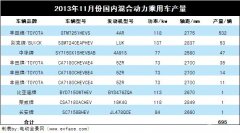 2013年11月份國內混合動力乘用車產量分析