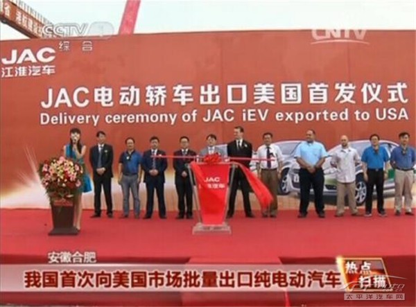 江淮汽車首批純電動轎車出口美國發車儀式隆重舉行