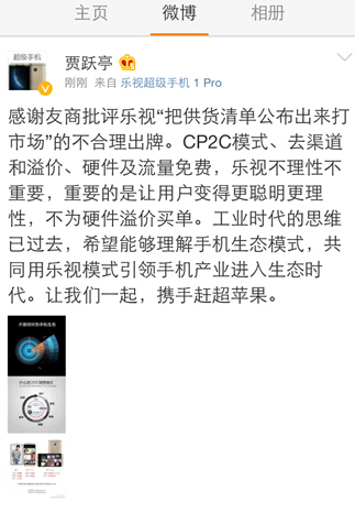 工業(yè)時代的思維已過去,希望能夠理解手機生態(tài)模式,共同用樂視模式引領(lǐng)手機產(chǎn)業(yè)進入生態(tài)時代。讓我們一起,攜手趕超蘋果。...