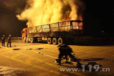 棗木高速入口處一裝滿廢舊鋰電池的掛車發生火災。大隊立即出動1輛高噴消防車、1輛水罐消防車和12名官兵趕往現場。...