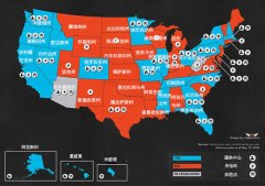 紅色是目前依然禁止Tesla直銷的州,藍色是Tesla可以合法直銷的州,而灰色則是正在針對Tesla立法的州。...