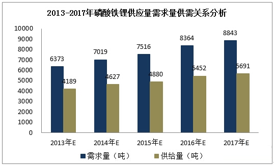 2013-2017年磷酸鐵鋰供需關(guān)系分析